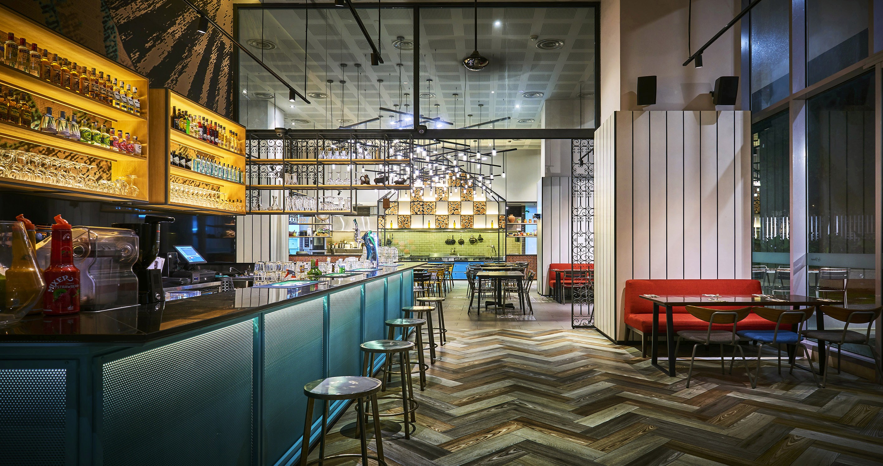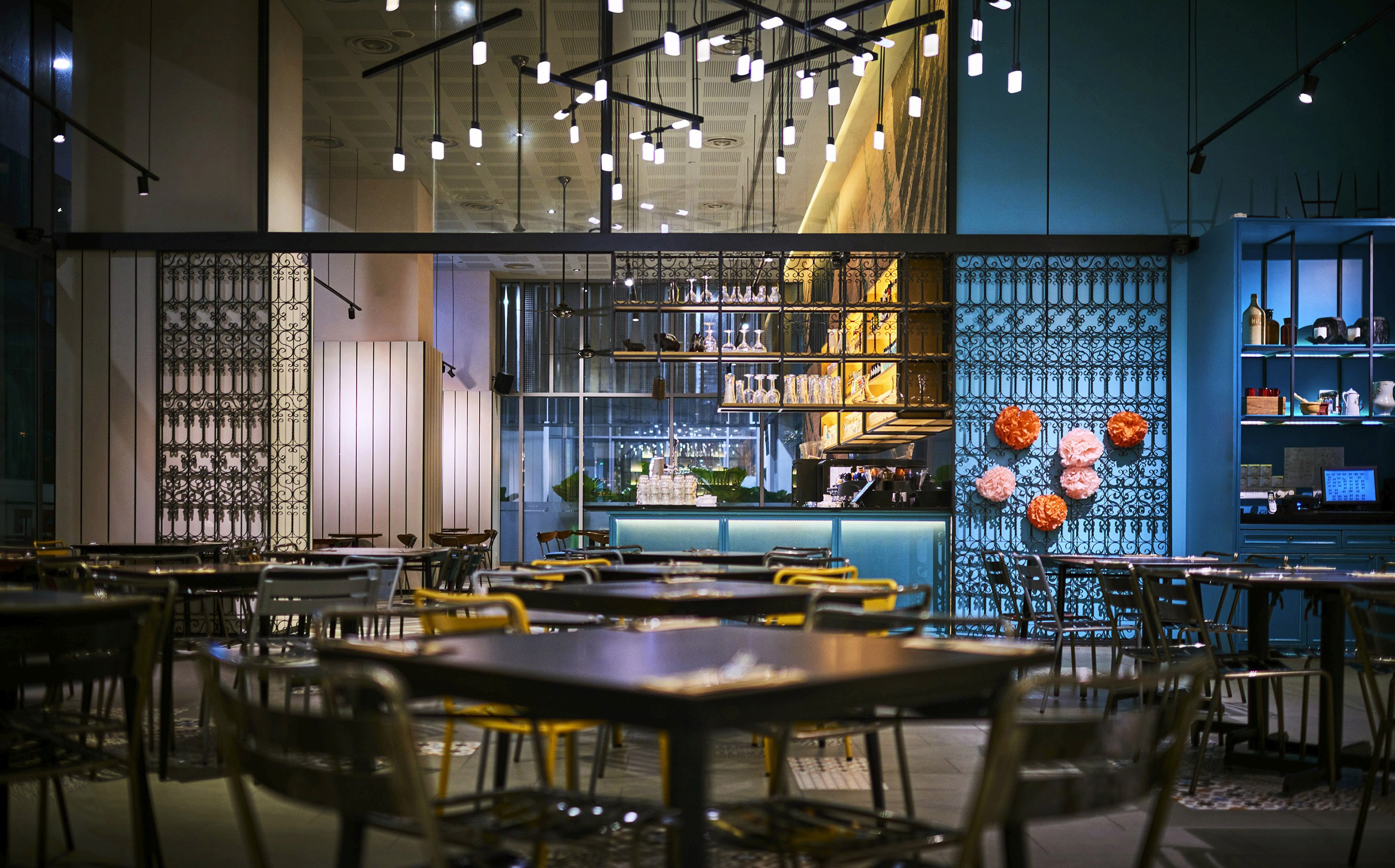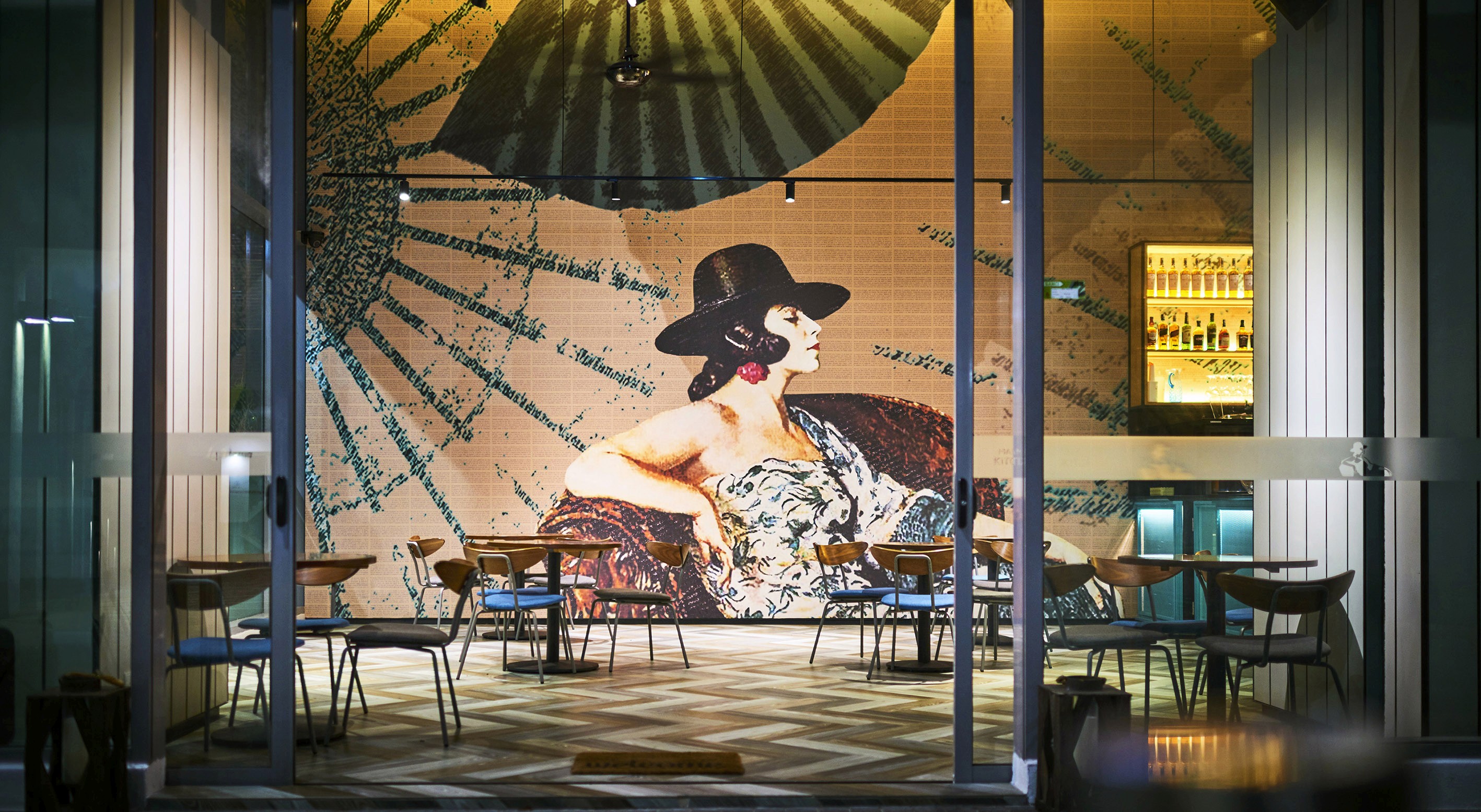 Imagine the basking streets of Spain in all its glitz and glamour, the crowd dancing and the aroma of fragrant paella wafting from the nearest bistro. Enter Marta’s Kitchen. Bringing all the vibrant flavours together, the interior space combines the vivacious notes of Spanish culture within a fun dining space. Upon entering the restaurant, witness the mural of a beautiful Spanish lady in bold colours – creating visual impact in an instance. In the dining area, the open kitchen – where the soul of Marta’s Kitchen lies – reveals the heart of the restaurant in full motion. Design elements bounce ubiquitous motifs of traditional Spanish homes from latticework, cabinetry and bright hues. Large windows also allow great amount of natural lighting during the day while reflecting the gleaming lights through its luminosity by night. Eccentric elements from oversize graphics to dynamic floor patterns reel in a fun and lively atmosphere for diners.