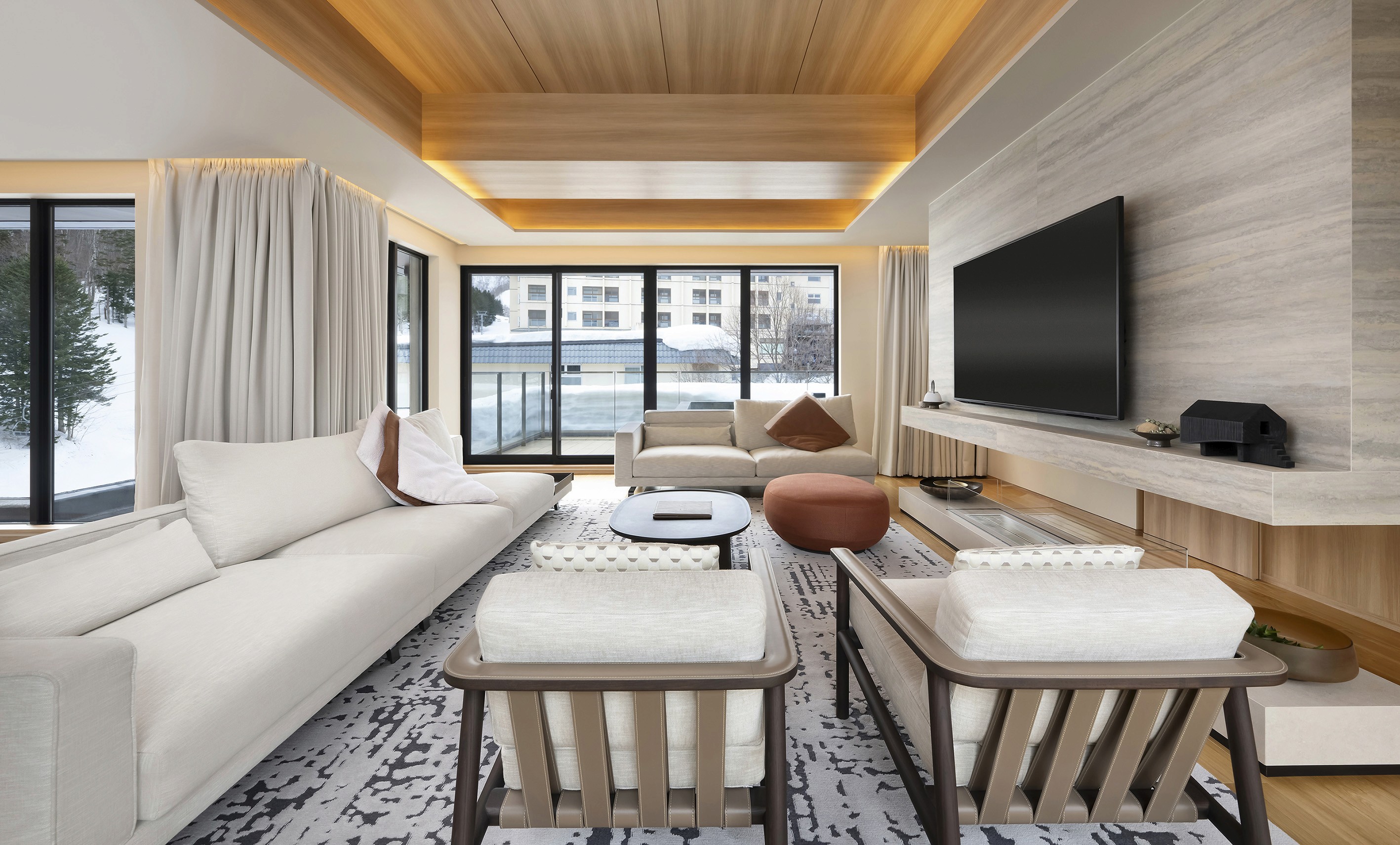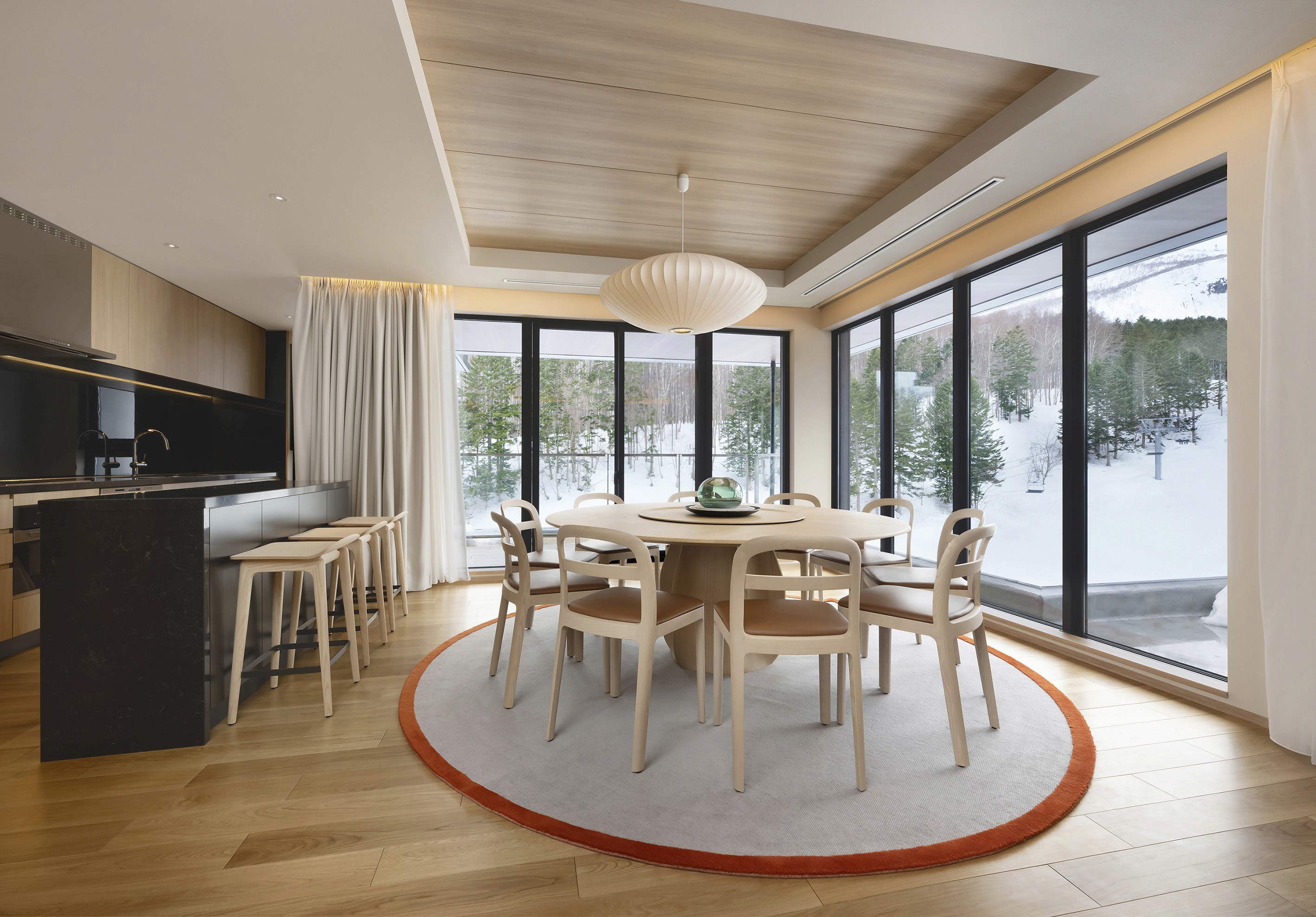 A home away from home, Niseko Kyo offers a deep connection between man and nature. ‘Kyo’ which translates home, belong and reunion suggests the returning of one self to a sanctuary — drawing you back to its alluring aura. Enter Niseko Kyo and luxuriate in an intentional neutral palette that brings to live a sense of belonging. While the arresting vista of Mount Yotei offers a magical respite, the warm tones set a zen-like mood in the space. The communal space is demarcated to be versatile for both intimate and larger occasions. Walking into the bedroom, the sweeping panorama extends a sense of immense tranquility. The design team maintains linearity with clean lateral lines to keep the composition easy to the eyes. Wood textures lend a touch of calmness while balancing the off-whites in the room.