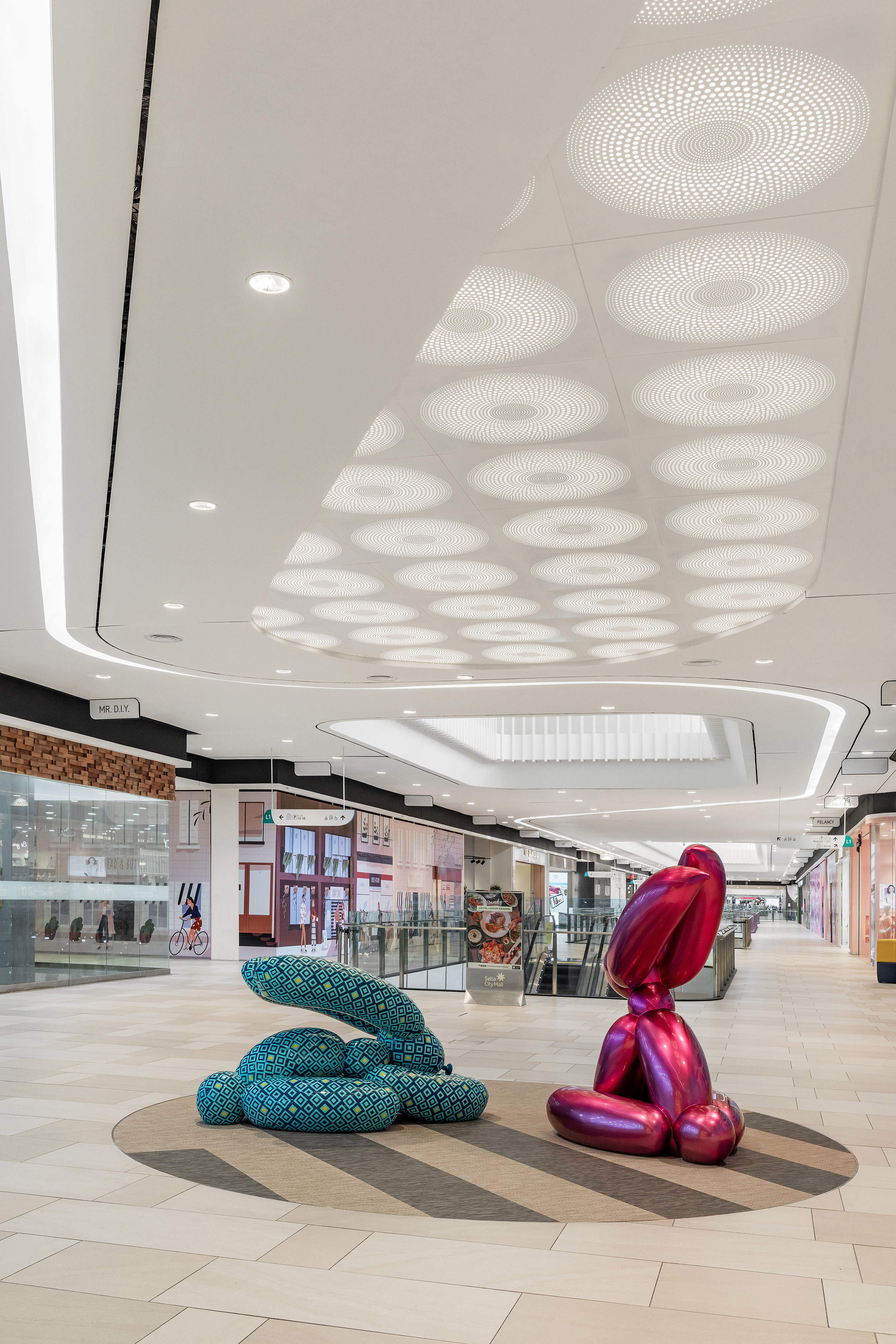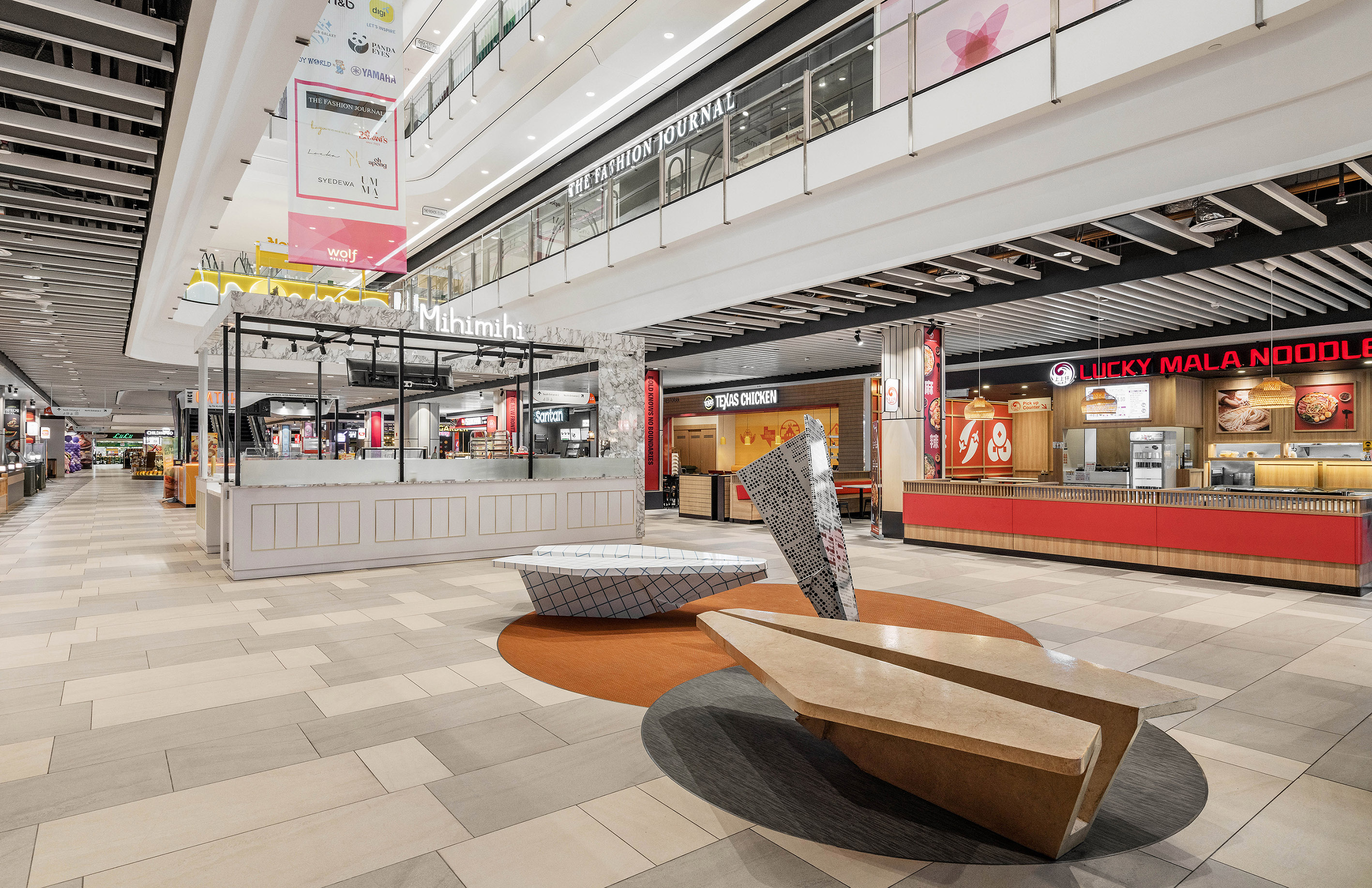 A sense of place takes over the new extension of Setia City Mall Phase 2 in Setia Alam with a mise en scene that is thoroughly informed by childhood memories and nostalgic elements. A conversational immersive space for millennials, the design scheme not only brings joy but also encourages interaction between adults and children, living to its name as the go-to neighbourhood mall for the community here. The interiors are predominantly neutral with coloured accents that distinguished each floor with its own identity — a appetite-inducing terracotta orange for the F&B precinct on the LG floor, a sepia yellow for the fashion precinct on the UG floor, and a calming seafoam green for the children and wellness precinct on L1. Every floor is cleverly demarcated with these overarching colour palettes, peppered with realistic art installations that depict childhood elements creatively. Elevating the idea of sentimental joy with a sense of community, this refreshing take on nostalgic elements from the 90s is truly an meaningful experience for the people here —bringing back the joy of reliving childhood memories through immersive spaces.