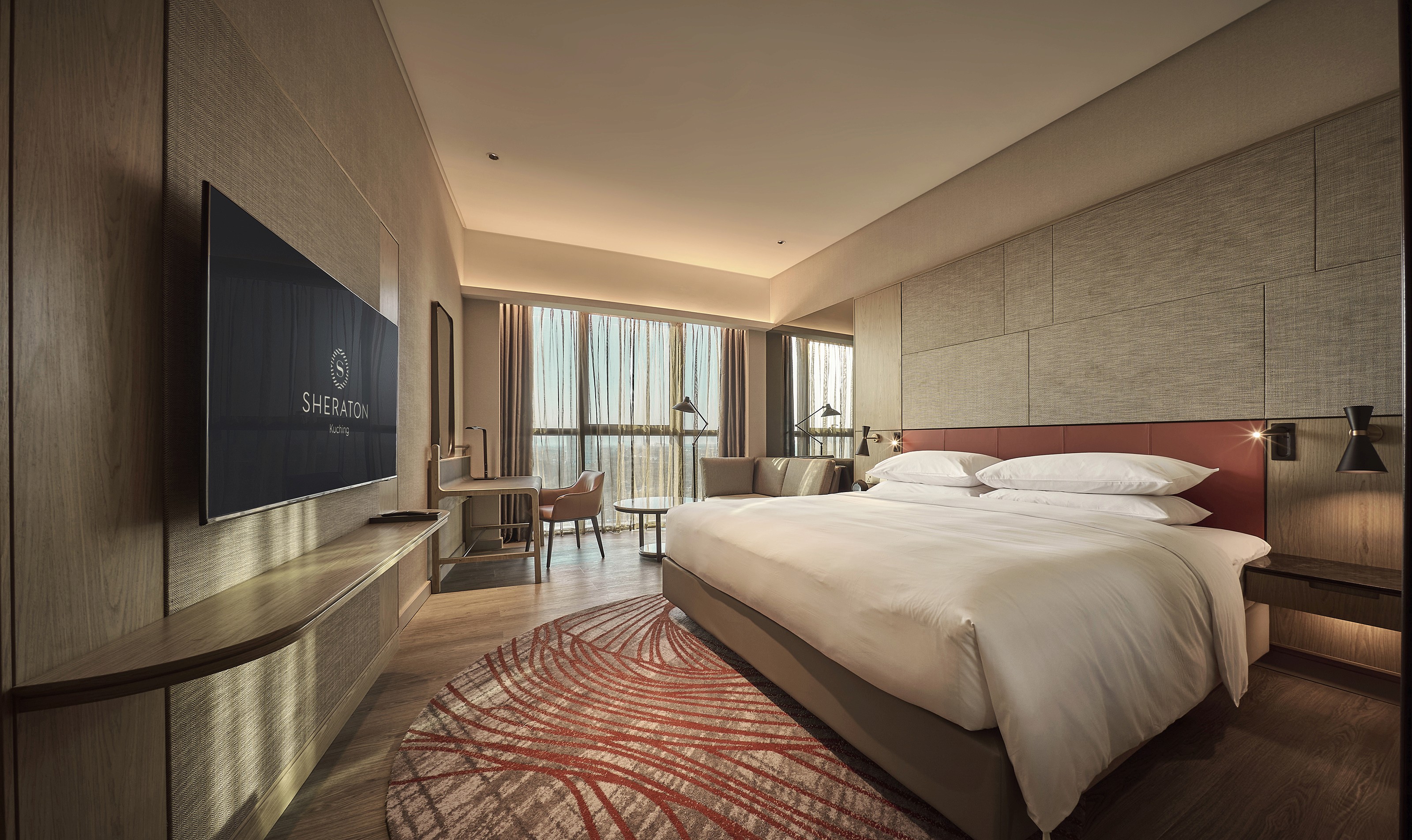 The Sheraton Kuching Hotel has unveiled a striking transformation, seamlessly blending historical charm with modern sophistication. The recent refurbishment, reflects Kuching’s evolving character through its design ethos. The hotel’s entrance features a contemporary design with subtle traditional accents, creating a welcoming atmosphere. Inside, the lobby is a masterful fusion of Kuching’s traditional crafts and modern elements, including intricate ceiling installations and sleek marble flooring. The bar lounge combines luxurious velvet and polished brass with modern lighting and abstract art, offering both serenity and vibrancy. Dining options range from the all-day restaurant with a blend of classic and modern influences, to the traditional Chinese restaurant Gu Jin, and the minimalist Japanese restaurant Ukemochi. Each space, including the gastro bar Tabby, integrates local craftsmanship with contemporary style with leitmotifs inspired by local craft, architecture and social fabrics. The guestrooms offer timeless elegance, with luxurious textures and neutral palettes, embodying a harmonious blend of history and modernity.